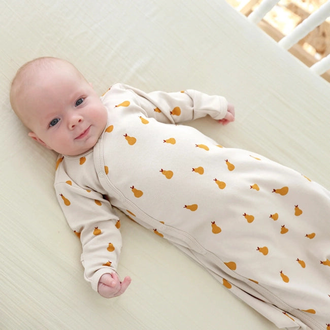 Our Signature print, 100% organic cotton Wrap Gowns make changing baby simple with elasticized bottom & side snaps.