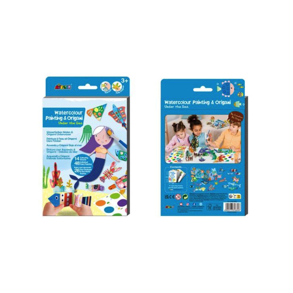 Two activities in one: watercolour painting and simple Origami. Each set contains 14 tear-off pictures, 48 paint palletes (six sheets) , and a paint brush.  FSC-certified. For ages 3 years and up.