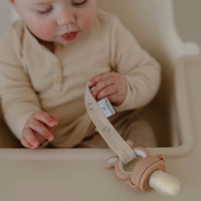 Designed with parents and babies in mind, The Moss and Fawn Forage Feeder is the best natural solution to soothe sore and painful gums from teething. The Forage Feeder helps alleviate pain and swelling from teething by using frozen food or breast milk. Using the Forage Feeder gives parents peace of mind when introducing solids to their babies. With the Forage Feeder, only small bits and pieces of food can pass through at a time. It’s also easy to clean and durable!