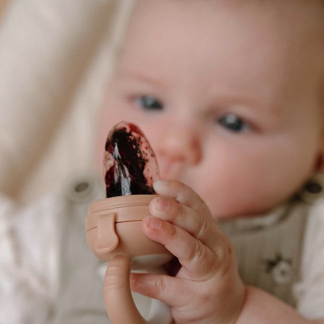Designed with parents and babies in mind, The Moss and Fawn Forage Feeder is the best natural solution to soothe sore and painful gums from teething. The Forage Feeder helps alleviate pain and swelling from teething by using frozen food or breast milk. Using the Forage Feeder gives parents peace of mind when introducing solids to their babies. With the Forage Feeder, only small bits and pieces of food can pass through at a time. It’s also easy to clean and durable!