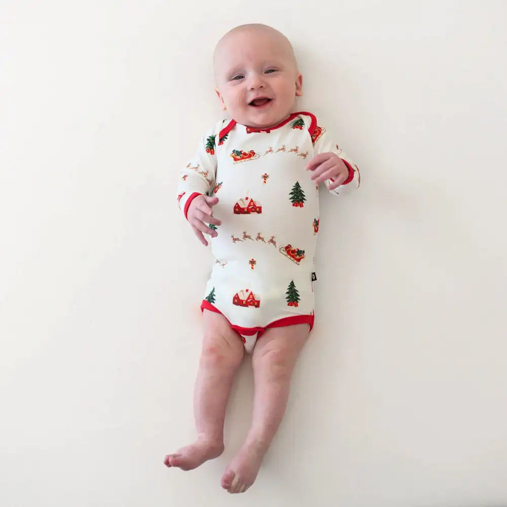Kyte Baby Long Sleeve Bodysuit in Santa Sleigh