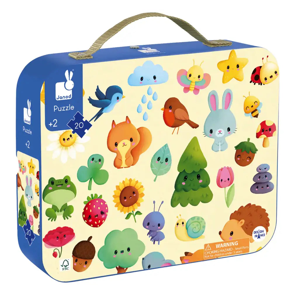 Over there a ladybug on a mushroom, over here a snail with a blue shell! With plenty to observe, toddlers will love completing this puzzle and getting to know the little animals in the garden. 20 piece puzzle.