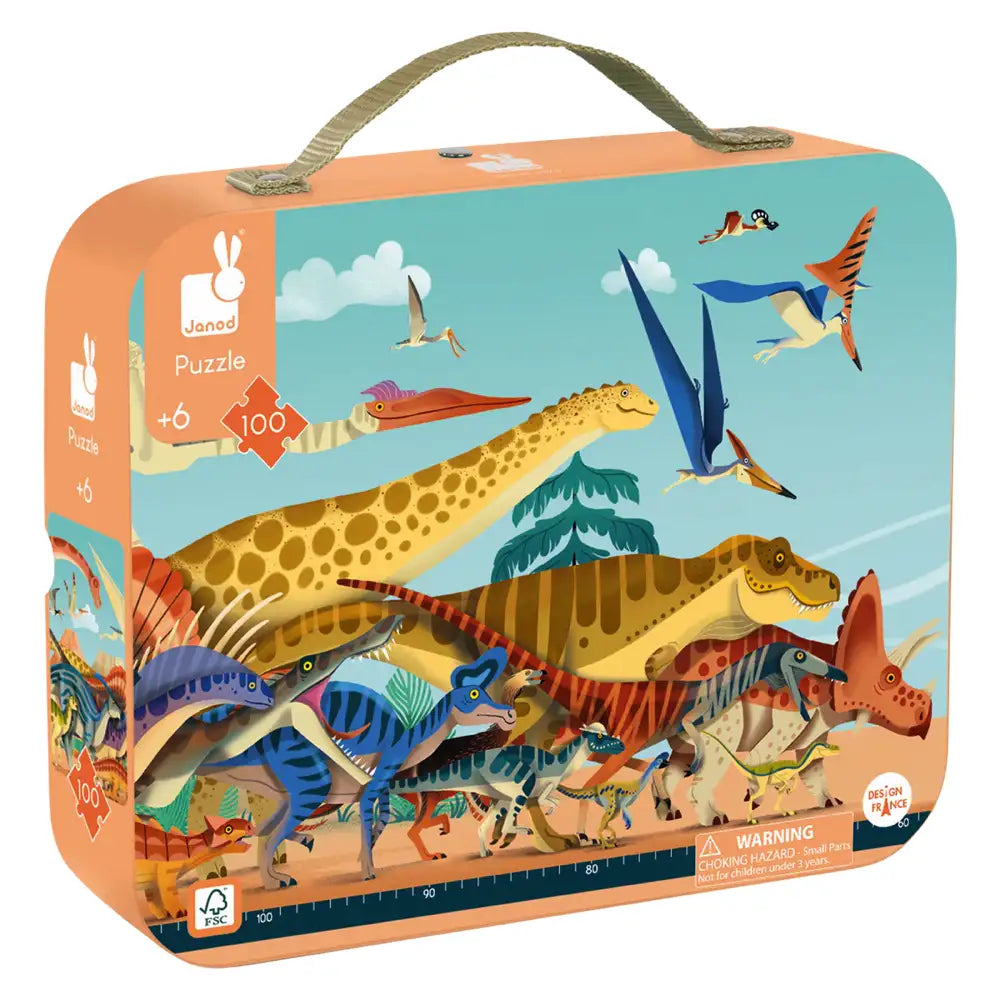 During which period did the Triceratops live? Triassic, Jurassic or Cretaceous? Find the answer with this stunning panoramic puzzle featuring a large number of dinosaurs, classified according to the period in which they lived. The puzzle has over 40 creatures and helps spark curiosity around the time of the dinosaurs. This cardboard puzzle is made up of 100 pieces and is 1 meter long when completed!