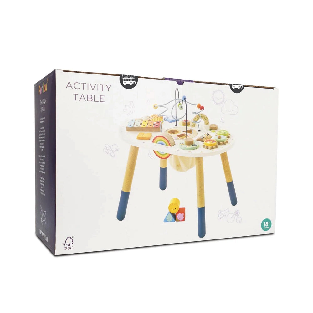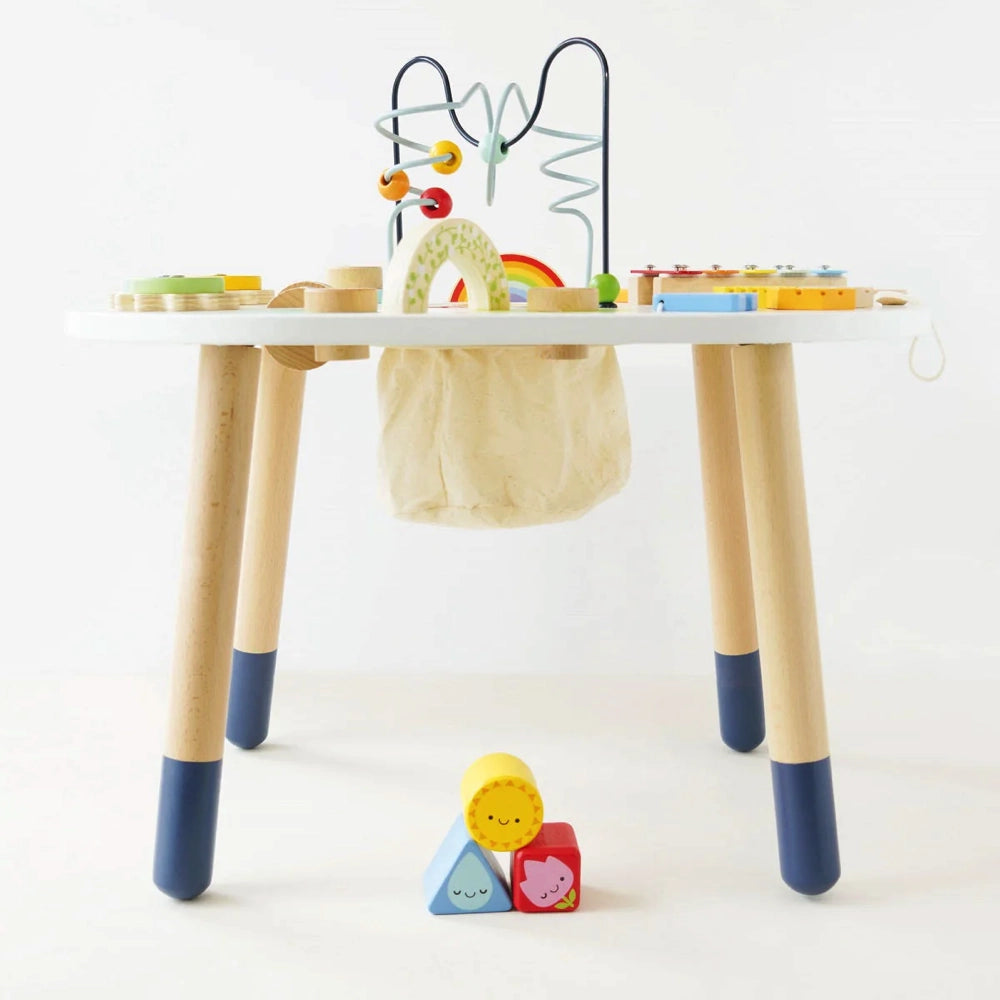 This activity table is packed with multi- sensory features to engage young, curious minds. Explore the centre piece bead maze with a shape sorter underneath, the rainbow xylophone, scratch board, turning gears and cogs, spinning rattle and more! Measures approximately 52 x 35 x 50 cm. Suitable for ages 18 months +.
