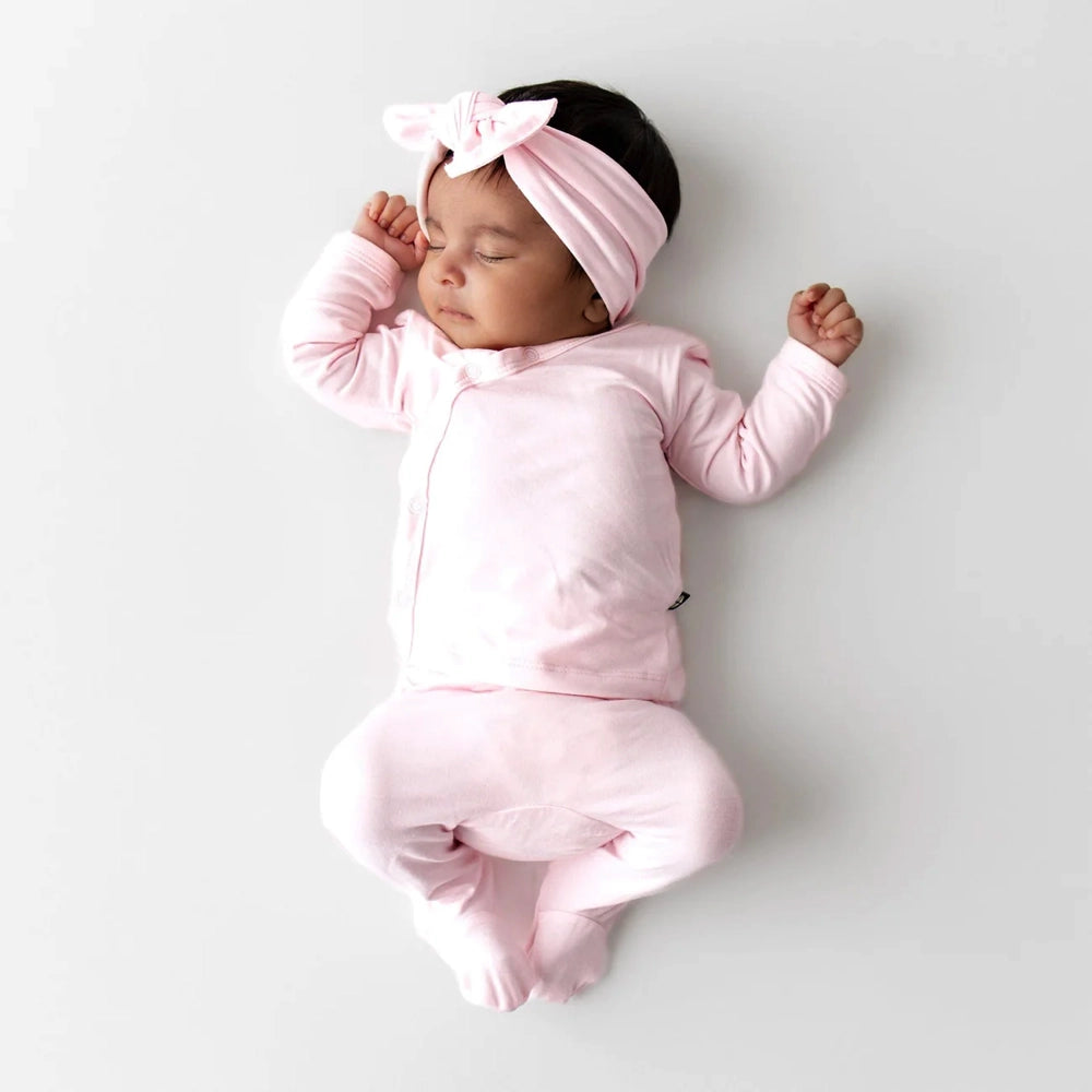 Welcome your newborn with the perfect outfit to mark the occasion. This ultra-soft set features a kimono style top that’s gentle and non-irritating on your baby’s umbilical cord stump, footed pants to cover those tiny toes, and a stretchy bow to add the sweetest touch to an adorable coming-home look.