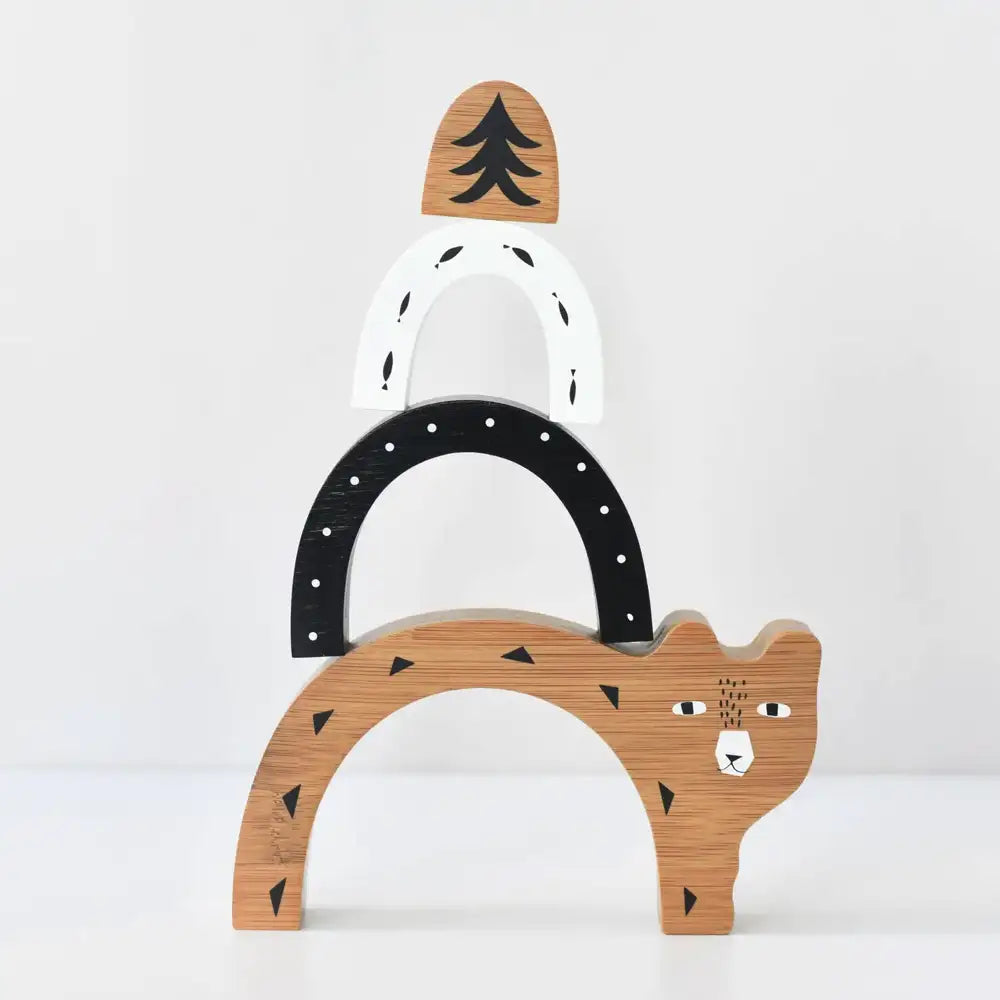 Our adorable Nesting Bear is made from sustainable eco-friendly bamboo wood. Nestable, stackable, sturdy pieces make for lots of fun opportunities for creative play. This toy comes in its own printed cotton bag for easy storage and gifting perfection. Recommended for ages 18 months+