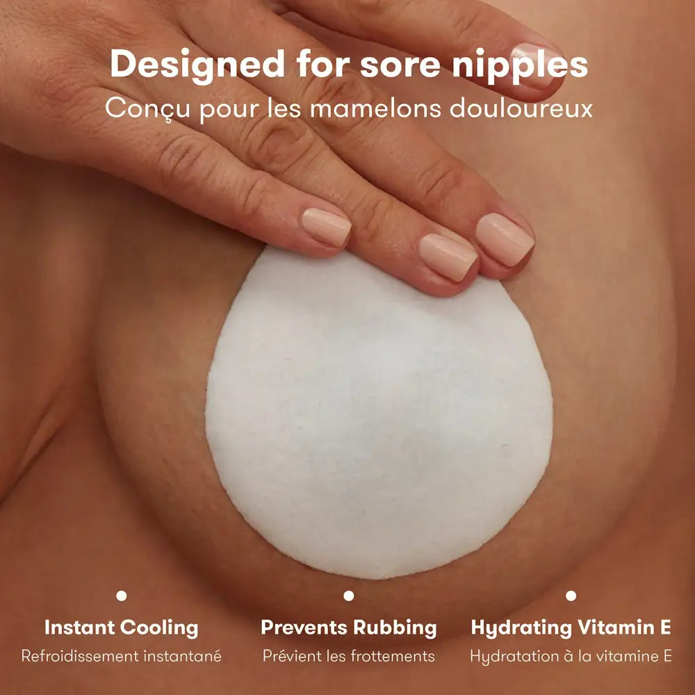Soothe sore, tender nipples with instant cooling that lasts 10x longer than the leading US brands for up to 4 hours of comfort. Our hydrating Vitamin E formula is safe and gentle for nursing moms. Made without added parabens, phthalates or fragrances, these 8 disposable pads provide a hygienic, healing environment with a unique teardrop shape to keep nipples protected from clothing and make for gentle removal when it's time for nursing or pumping.